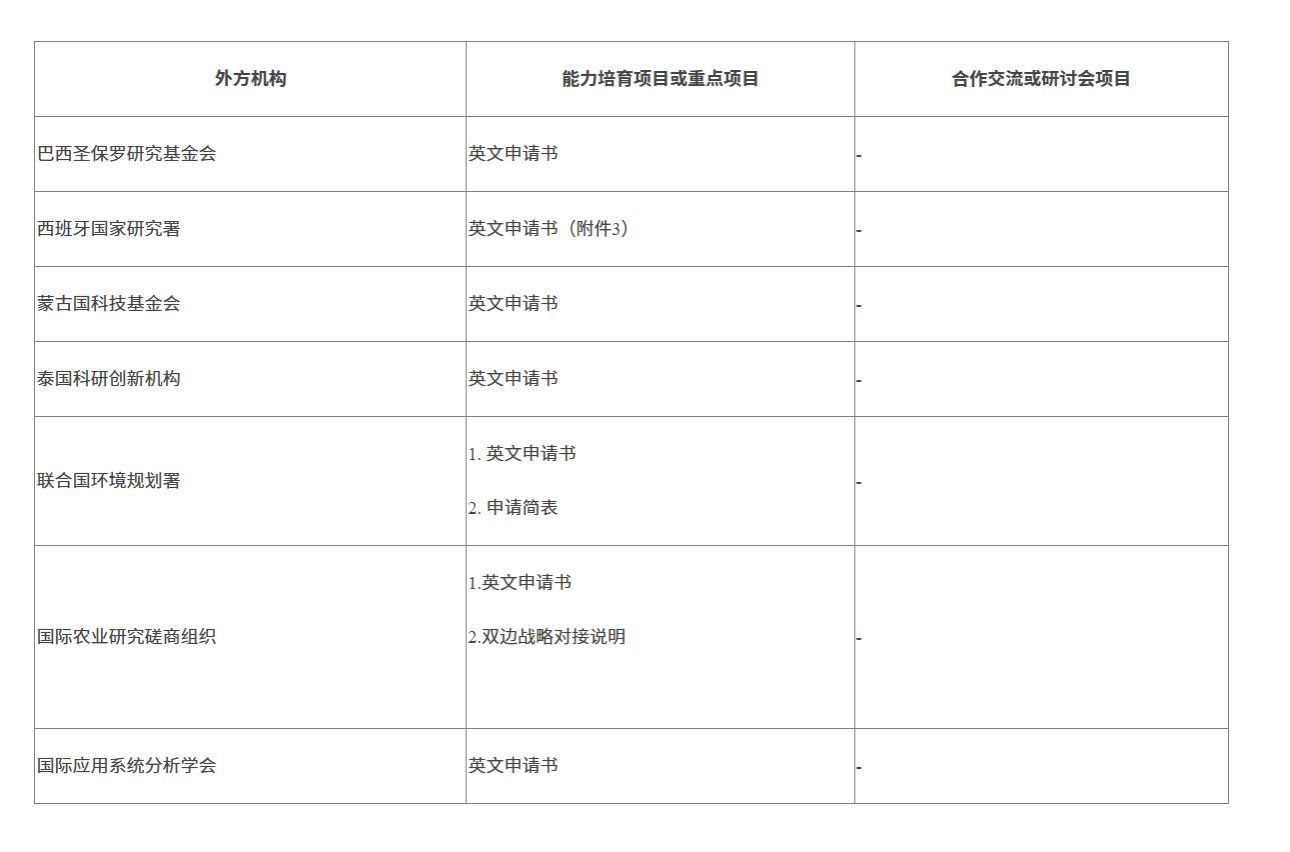 2026年度,科学计划将发布两批指南,包括组织间合作及战略性研究两类。首批指南包括的国际合作机构有巴西圣保罗研究基金会(FAPESP)、西班牙国家研究署(AEI)、蒙古国科技基金会(MFST)、泰国科研创新机构(TSRI)、联合国环境规划署(UNEP)、国际农业研究磋商组织(CGIAR)、国际应用系统分析学会(IIASA)。
