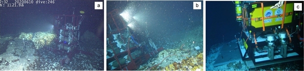 图2 Mulit-RiPs搭载LOOP连续三年(a:2020年;b:2021年;c:2022年)布放于我国台西南冷泉区域对深海原位实验进行探测与分析