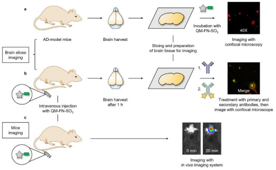 值得注意的是,Aβ斑块积累是阿尔茨海默症最显著的病理特征。因此,开发可视化的荧光探针检测Aβ斑块对阿尔茨海默症的早期诊断至关重要。