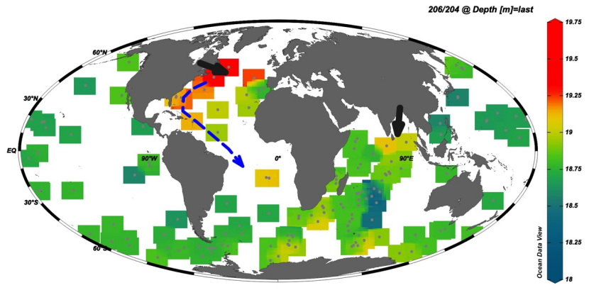该研究收集了全球深海自然状态下(前人新世)的铅同位素数据,发现陆源沉积物对海水铅的影响并非局限于浅海。对于西北大西洋以及孟加拉深海扇等区域,大量陆源物质被输运到深海,由于深海铅浓度很低,颗粒态-溶解态交换使得陆源物质成为深海铅的重要来源。这也意味着,通过陆源沉积物向深海的输运,河流对海洋铅的影响远超河口淡水的影响范围。研究人员进一步估算了边界交换对前人新世全球海洋铅的贡献,表明这一贡献可以填补海洋铅源-汇不平衡的缺失通量。