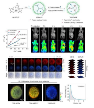 APN设计策略不仅提升了染料分子运动,也能操控其内部分子的相互作用。由于APN纳米颗粒具有优异的水渗透性,其充内环境有利于Gd3+离子和水质子的相互作用,从而提升了其作为造影剂的弛豫率。基于APN策略精准调控限域环境的分子运动与分子间相互作用,成功实现了多细胞肿瘤球的三维荧光寿命成像。研究人员利用APN纳米探针,成功在小鼠体中实现高时空分辨的磁共振成像,并用于引导肿瘤高效的光热治疗。APN策略表现出巨大的应用前景,有望推广至更多的成像、诊断与治疗模式,并将在应用性能方面取得突破,例如NIR成像、光动力治疗等等。