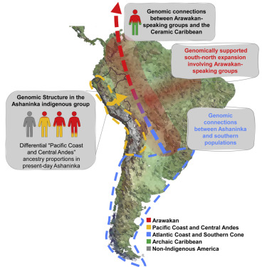 这两个新发现亚群的基因数据表明,随着时间的推移,来自南美洲其他地区的人进入并与当地人出现混合的程度和时间不同,他们外形也不同。这些外来群体包括来自安第斯山脉和太平洋海岸的其他土著居民。研究人员报告说,阿沙宁卡人的祖先很可能可以追溯到土著群体的一次南北向迁移,他们从东南地区进入亚马孙雨林,并混合了南锥地区和大西洋海岸居民基因。