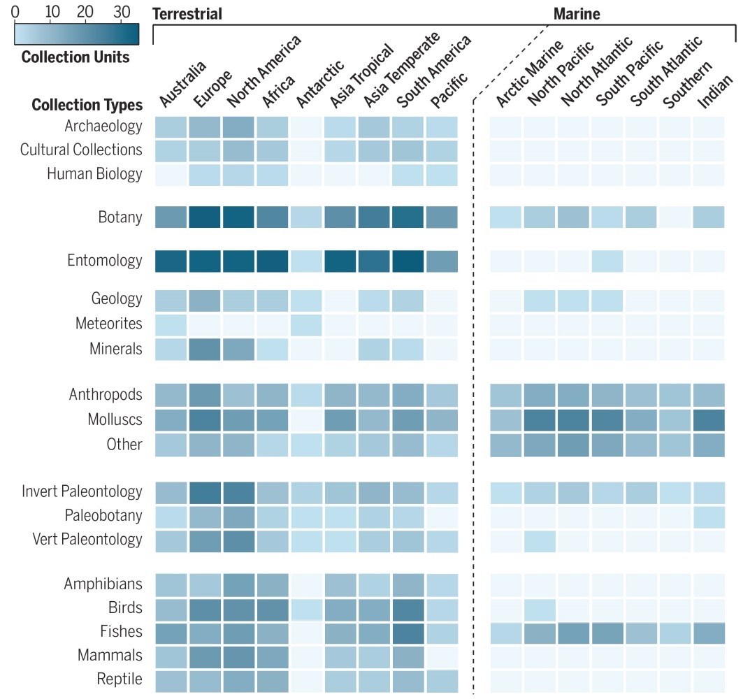 全球自然藏品单元热图。图片来自论文