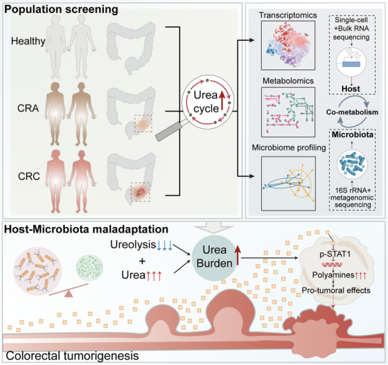 近日,上海交通大学医学院附属仁济医院教授房静远团队在《细胞-代谢》发表文章,首次揭示肠道菌群能够介导宿主尿素循环代谢途径,与宿主形成免疫-微生物代谢轴,进而调节宿主免疫代谢与功能,影响结直肠癌的发生。该成果为干预结直肠腺瘤-腺癌进程提供了潜在的诊断、预警及治疗靶点。