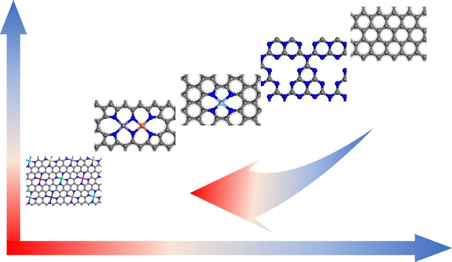 研究人员发现碳材料局部对称性与其活性呈现强相关性,即局部结构对称性越低,其催化活性则会增强。通过引入高熵催化剂使碳材料局部对称性最小化,降低离域电子芳香性,从而激活碳骨架原本惰性的π-电子网络,增强了催化剂位点之间的协同作用,使中间态产物与催化位点的作用强弱适中,ORR/OER可逆过程更容易发生。