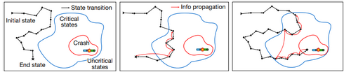 将实际问题从统计学的视角转化为学术问题后,封硕团队从理论层面寻求突破,创造性地提出了密集强化学习方法(D2RL),通过识别和删除非安全关键状态、连接安全关键状态,并在编辑后的马尔科夫过程中训练神经网络,解决了“稀疏度灾难”。同时利用密集强化学习方法训练交通环境中的背景车辆,构建出一个由自动驾驶汽车和背景车辆组成的智能测试环境,从而实现了模拟环境替代实际道路环境。