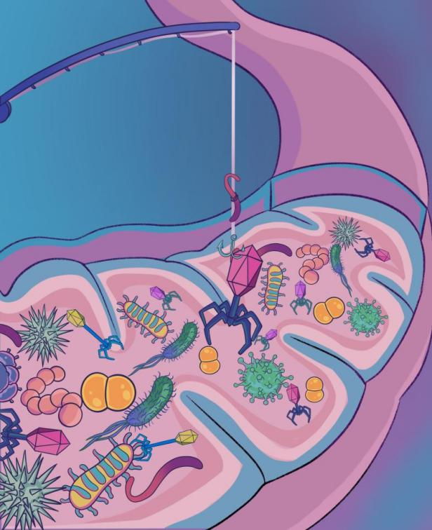 研究显示,噬菌体是人体微生态系统中最多样化却仍未被准确识别的成分,它们和其宿主细菌之间的相互作用影响着人体健康。利用噬菌体疗法精准靶向调节肠道菌群是当前肠道微生物研究的前沿领域。