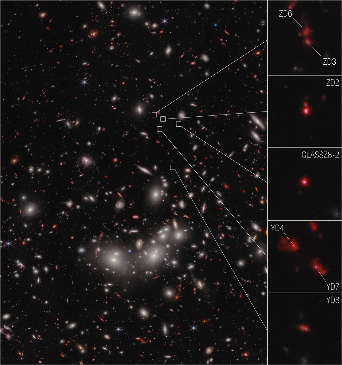 使用韦布的红外成像可以检测温暖尘埃发出的热辐射,英国皇家天文台的Olivia Jones和同事在小麦哲伦云中称为NGC 346的恒星形成区域,观测了数百个年轻的低质量恒星(比我们的太阳年轻、质量轻的恒星)。他们检测到尘埃围绕在年轻恒星近处的迹象,意味着行星应会随着年轻恒星的成熟而形成。