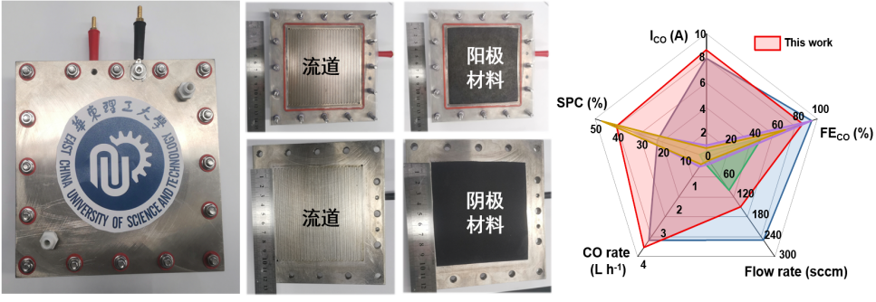 二氧化碳膜电极电解器件及其规模化一氧化碳电合成。华东理工供图