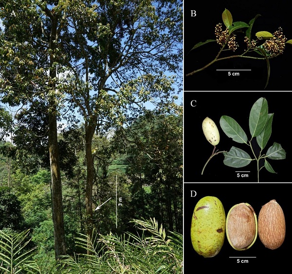 大果土楠。 A 生境;B 具有花序的枝条;C 未成熟果实和小枝;D成熟果实。李朗摄