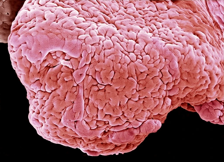 溃疡性结肠炎患者的肠道组织(人工染色)。图片来源:Steve Gschmeissner/Science Photo Library