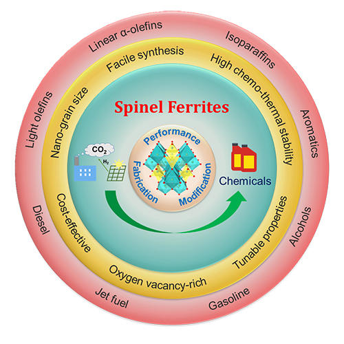 近日,中国科学院大连化学物理研究所孙剑研究员、葛庆杰研究员、位健副研究员团队受邀发表了尖晶石型铁酸盐催化剂(SFCs)驱动二氧化碳(CO2)加氢制备高值化学品综述文章。相关成果发表在《物质》上。