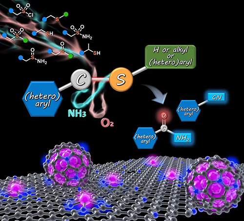有机硫化合物是有机合成中最基本的合成砌块之一,同时也普遍存在于许多天然产物和化石资源中。因此,对C-S键活化模式与机理的探索引起了研究者的广泛关注。近日,中国科学院大连化学物理研究所研究员戴文团队在多相催化有机硫化物的高值转化与利用研究方面取得新进展。团队利用石墨烯包裹的钴(Co)纳米颗粒和原子分散的Co-Nx协同催化策略,实现了一系列芳香族及脂肪族有机硫化物C-S键的氧化断裂到腈和酰胺类化合物的转化。相关成果发表在《自然—通讯》上。