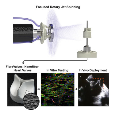 为了制造瓣膜,研究人员使用气流喷射将液体聚合物引导到瓣膜形状的框架上,从而形成微小纤维的无缝网络。这些瓣膜被设计成是暂时和可再生的:它们为细胞提供了一个多孔支架,让细胞浸润、扩展,并最终取代生物降解的聚合物。