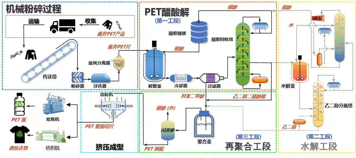 乙酸化学解聚实现废弃PET闭环循环的示意图 中国科大供图