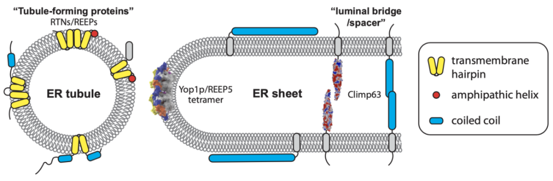 胡俊杰近期连续发表的这两篇论文,探究的正是决定片状内质网厚度和管状内质网直径的两种蛋白的结构。他选取的主要成管蛋白名叫 Yop1p,而片状部分的支撑蛋白则是桥连蛋白Climp63。
