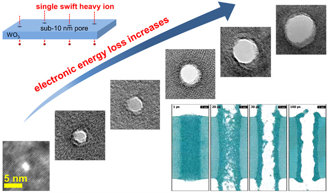 研究工作为重离子束应用于固态纳米孔制备开辟了新途径,也为解释重离子在固体材料中潜径迹形成的微观机理提供了重要的理论依据。