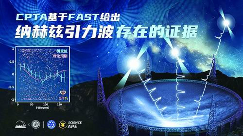 6月29日,由中国科学院国家天文台(以下简称国家天文台)等单位科研人员组成的中国脉冲星测时阵列(CPTA)研究团队,利用FAST探测到“纳赫兹引力波”存在的关键证据。相关论文在我国天文学术期刊《天文与天体物理研究(RAA)》在线发表。与此同时,来自欧洲-印度、美国、澳大利亚等国家和地区的另外3个国际团队同步发表了各自独立获得并且相互印证的结果。