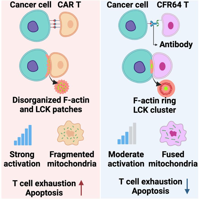 该研究揭示了免疫突触形态对CAR-T细胞抗耗竭以及抗肿瘤持续性的重要性,为提高CAR-T的持续性以及新型CAR-T的研发提供了新的思路。