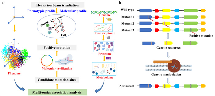 将多组学和分子操作技术相结合,识别、验证和编辑突变位点,创造具有高价值的突变体。近代物理研究所供图。