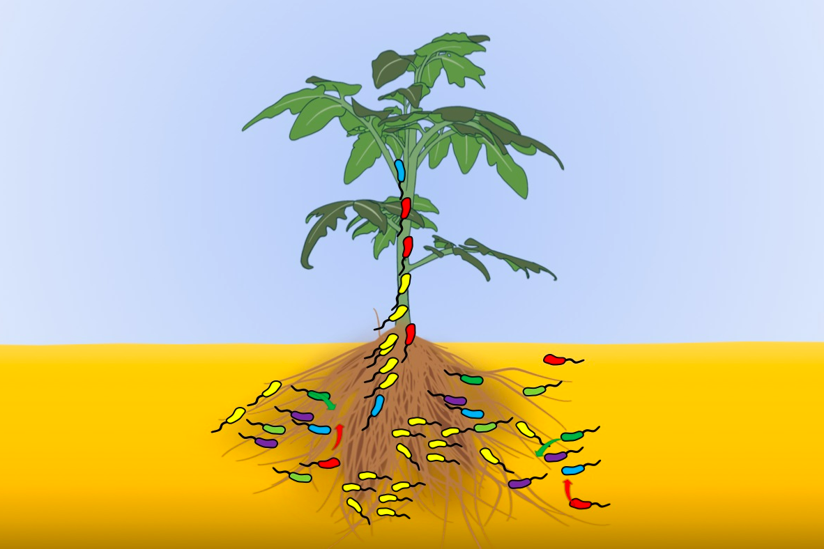 该研究以抗性和易感两种番茄品种为材料,模拟根际免疫强度的梯度变化,探究根际入侵前后,标记青枯菌种群结构、组成和多样性的变化规律。研究发现,根际免疫强度的增加使得选择压增强,导致成功入侵植物体内青枯菌的种类和多样性减少。其中,根系物理结构和免疫能力的完整性是阻控青枯菌入侵的关键。