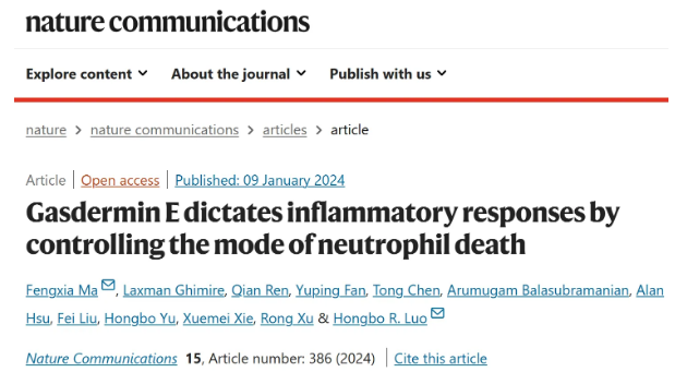 1月9日,《自然通讯》在线发表了中国医学科学院血液病医院(中国医学科学院血液学研究所)马凤霞副研究员与哈佛大学医学院罗鸿博教授合作一篇题为“Gasdermin E dictates inflammatory responses by controlling the mode of neutrophil death”的研究论文。该研究发现Gasdermin E(GSDME)决定中性粒细胞的死亡方式及炎症反应的程度。