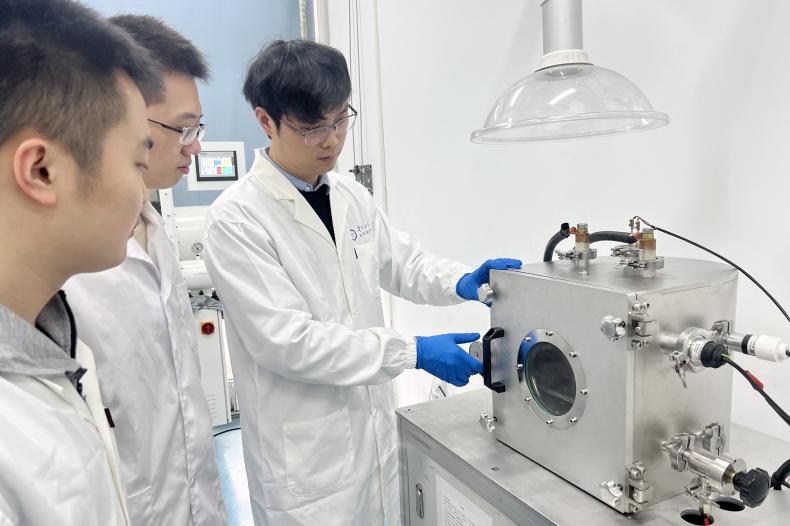 褚衍辉(右一)与团队在实验室。受访者供图