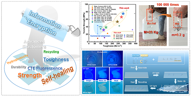 在工程聚合物材料领域,强度与韧性的平衡一直是科研人员追求的目标。近日,中国科学院兰州化学物理研究所先进润滑与防护材料研究发展中心聚合物自润滑复合材料课题组成功研发了一种具有高拉伸强度、非凡韧性、抗撕裂、抗疲劳、出色的弹性恢复能力和形状记忆特性的新型超分子弹性体。相关论文发表于《先进材料》。