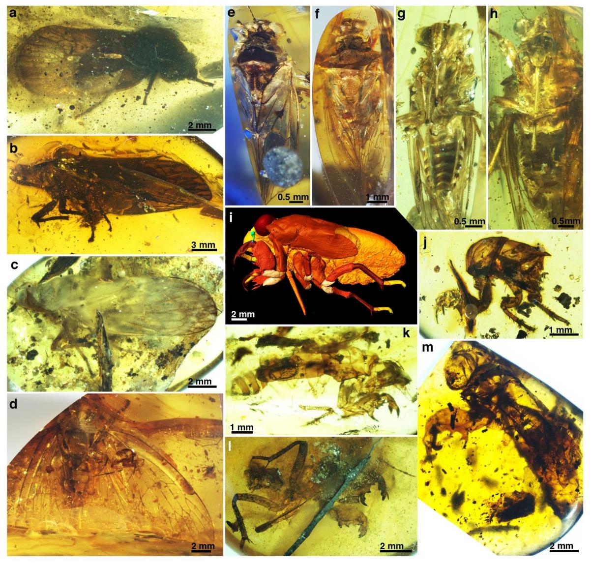 缅甸克钦琥珀中蝉总科成虫、幼虫和蝉蜕化石 受访者供图