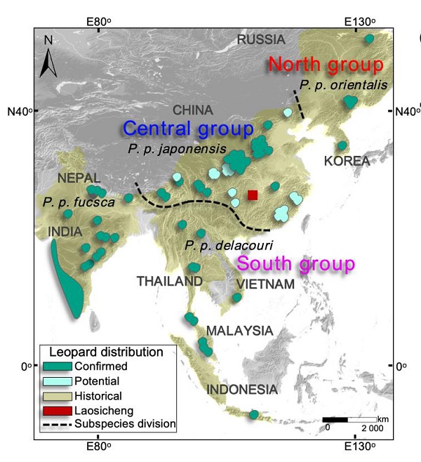 此前,国际自然保护联盟(IUCN)猫科动物专家组将华北豹划归到了东北豹。然而这项最新研究的结果显示,东亚地区的东北豹、华北豹和华南豹被明确划分为三个不同的亚群,分别与东亚北部、中部和南部的地理位置相对应。通过线粒体基因组数据的突变率推算,发现东北豹、华北豹和华南豹的分化时间约为15.5万年前。