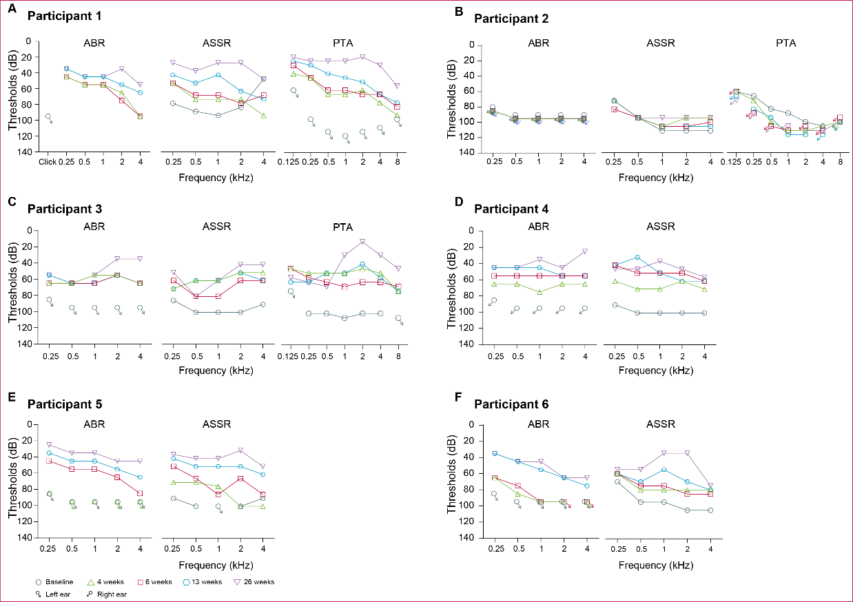 全球先天性耳聋患者高达2600万,我国每年新生约3万聋儿,其中60%与遗传因素相关,严重阻碍了儿童言语、认知以及智力发育,目前临床上尚无任何治疗药物。OTOF基因(表达耳畸蛋白)突变是导致先天性耳聋常见的病因之一,常引起儿童重度至极重度或完全听力损失和言语障碍。