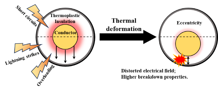 聚丙烯绝缘温度稳定性较低引发的电缆偏心故障示意图。(课题组供图)