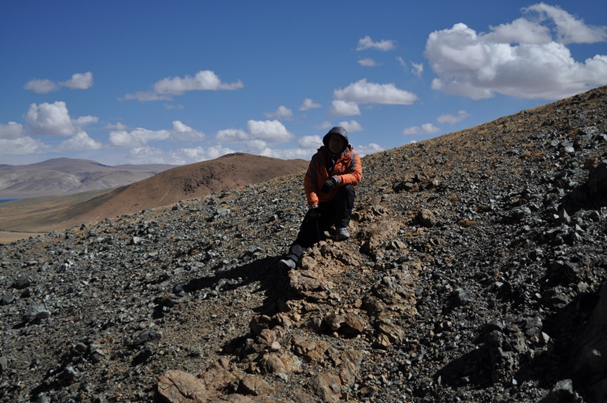该文第一和通讯作者史仁灯研究员在青藏高原实地考察永珠地幔橄榄岩,以身体做比例尺记录纯橄岩产出规模(中国科学院青藏高原研究所供图)