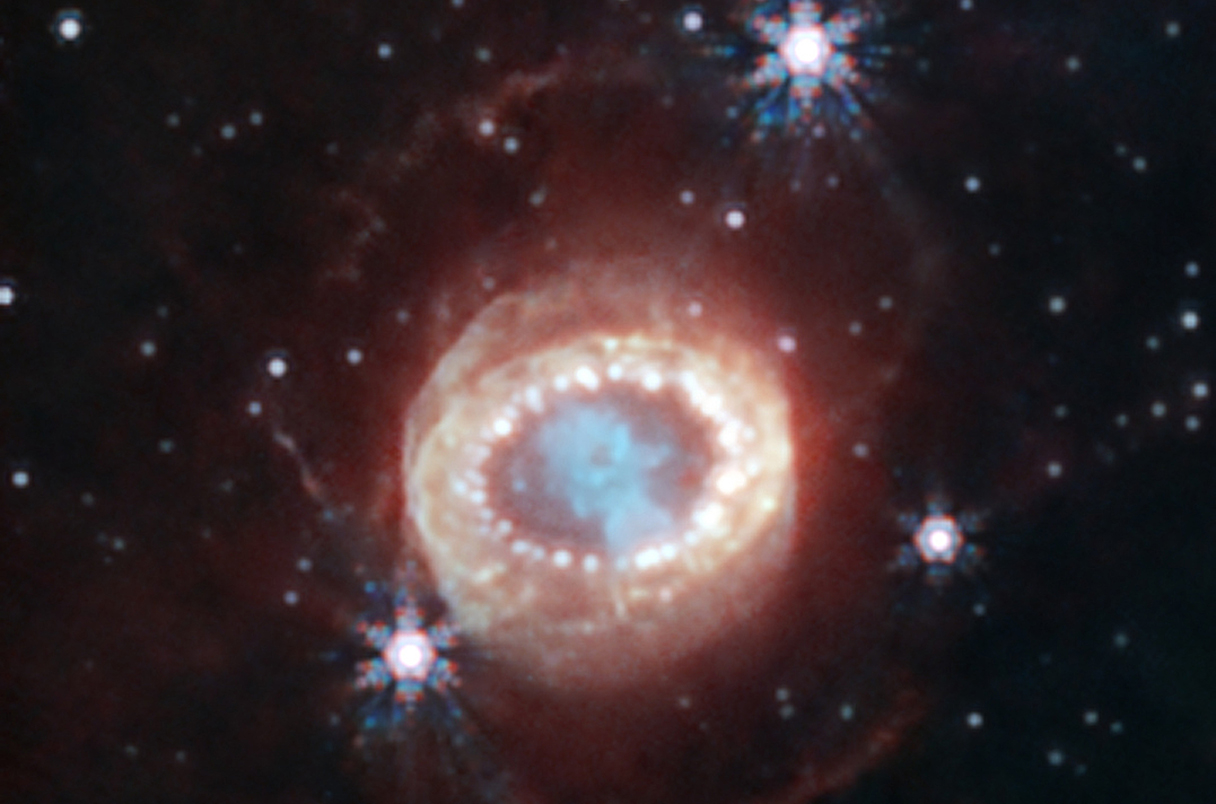 NASA的哈勃太空望远镜未能在可见光中发现这一特征。NASA的斯皮策太空望远镜看到了一些红外辐射,但无法确定其来源。2022年7月16日,就在它开始观测的几天后,JWST指向了SN 1987A。其6.5米大反射镜赋予了它清晰的视觉,它的光谱传感器延伸到远红外线,那里隐藏着许多发射线。“JWST的视野正好适合观测SN 1987A。”Fransson说。