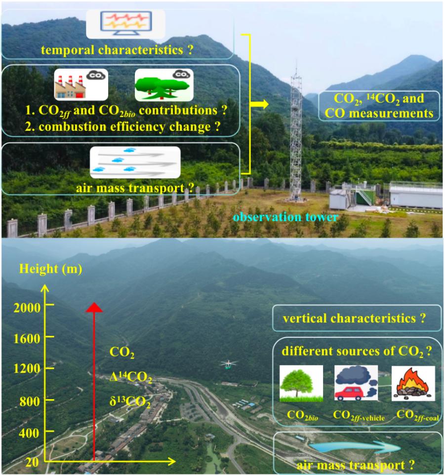 秦岭北麓大气CO2及其碳同位素(13C、14C)的综合立体观测研究。(课题组供图)
