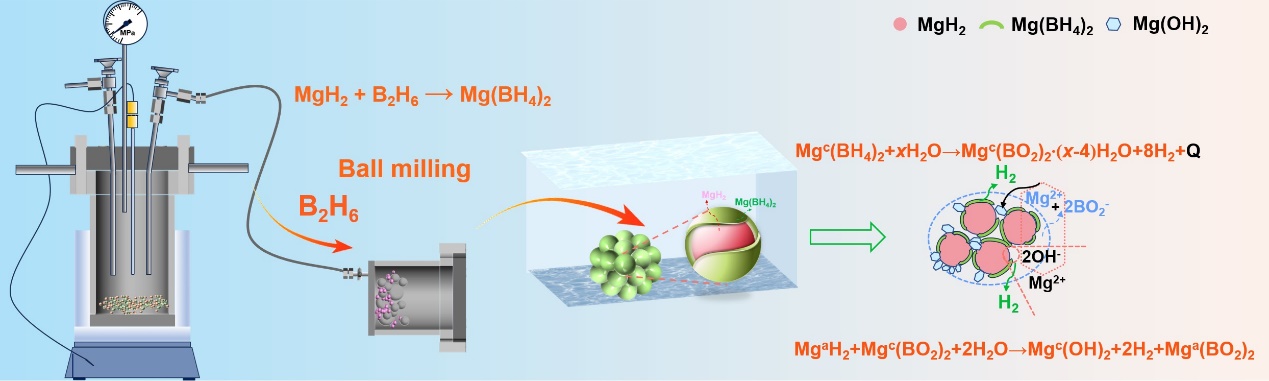 核壳纳米结构的MgH2@Mg(BH4)2复合材料制备流程。受访者供图