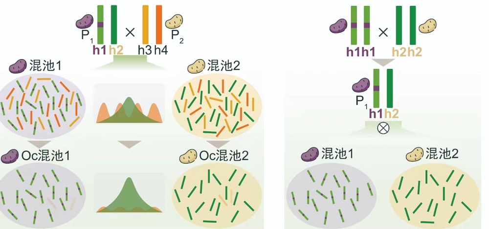 近日,中国农业科学院蔬菜花卉研究所蔬菜分子设计育种创新团队联合马铃薯遗传育种与栽培创新团队,通过解析异交(异花授粉)植物杂交1代分离群体的遗传特点,开发了一套新算法工具OcBSA,该工具可以高效促进异交植物的基因挖掘。相关研究成果发表在《分子植物》(Molecular Plant)上。