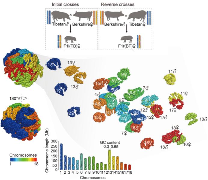 杂交猪同源染色体的三维空间构象 四川农业大学供图