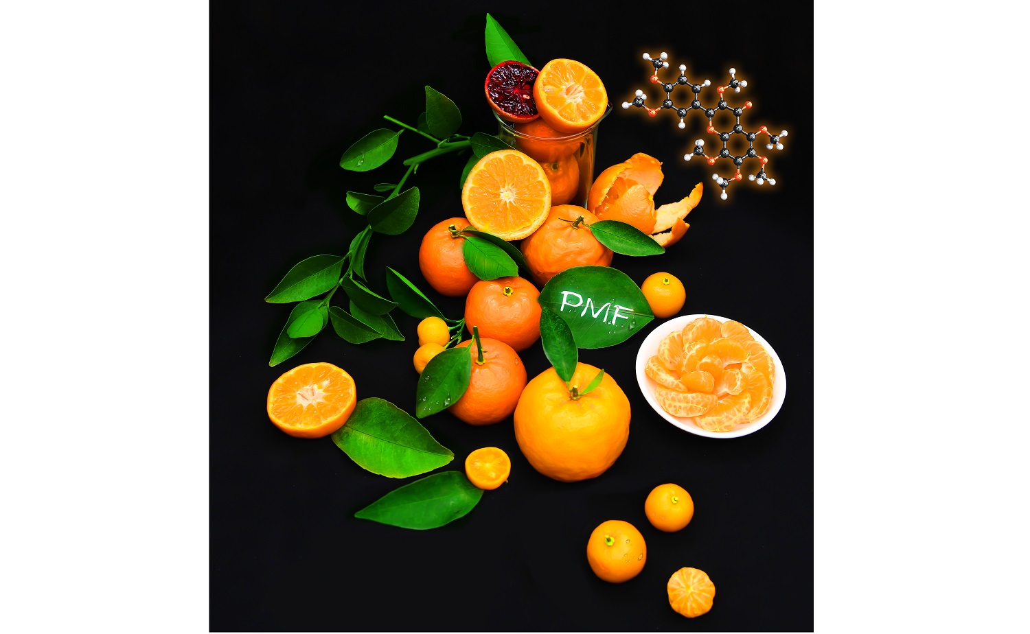 富含聚甲氧基黄酮的宽皮橘类及聚甲氧基黄酮结构式。华中农大供图