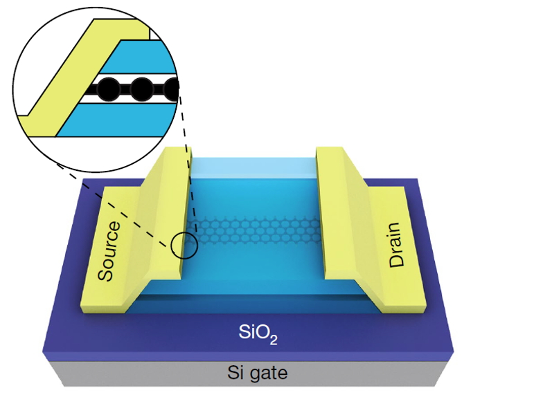 “原位封装”的石墨烯纳米带晶体管 图片来源于《自然》