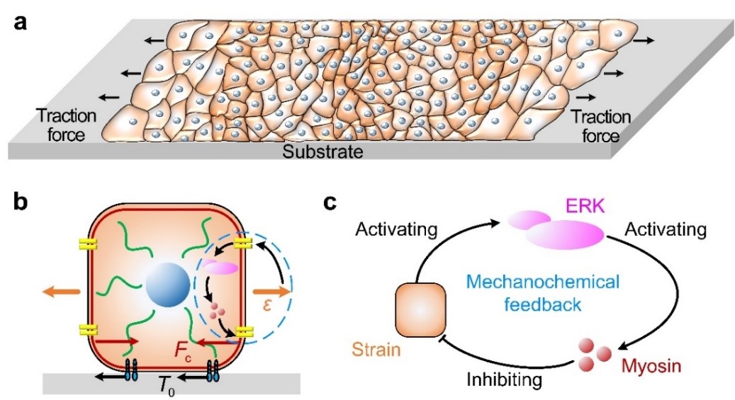 西安交通大学徐光魁教授团队结合细胞微纳结构特征和活性分子的力-化学反馈回路,开发出基于结构刚度矩阵的高效离散顶点模拟方法,用于研究细胞群体运动与变形的时空演化过程。近日该研究成果发表在《纳米快报》上。