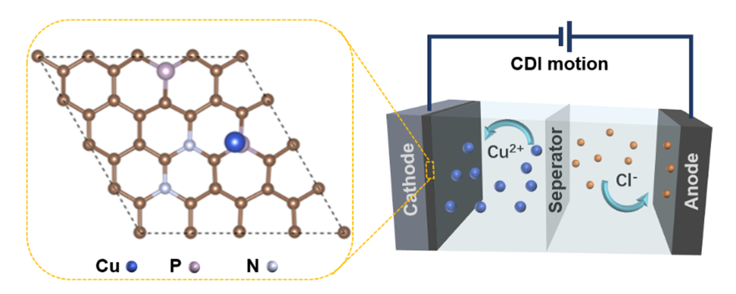 “研究表明,通过磷空位的引入不仅增加了材料的导电性,还为吸附提供了更多的活性位点,缩短了铜离子离子的扩散路径,减轻了运行中的体积变化,大大提高了去离子效率和选择性。相较于单氮掺杂碳材料,电吸附性能提高了120倍,在18个连续的吸附-脱附循环后,铜离子去除率保持在102%左右。”黄新华说。