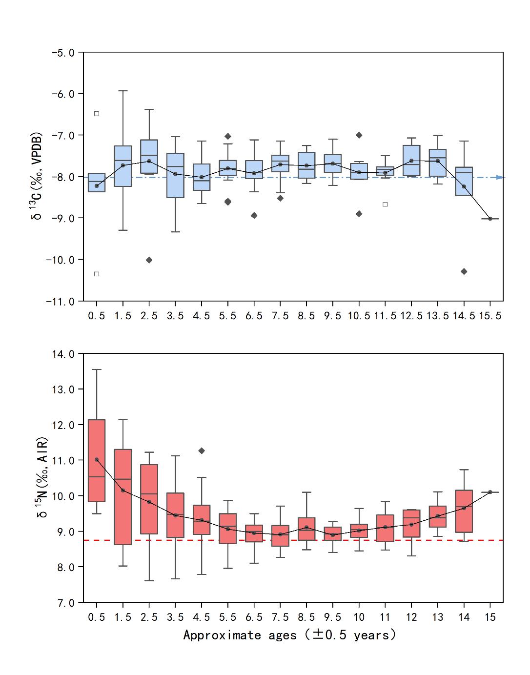 牙齿碳氮稳定同位素不同年龄段的分布变化 课题组供图