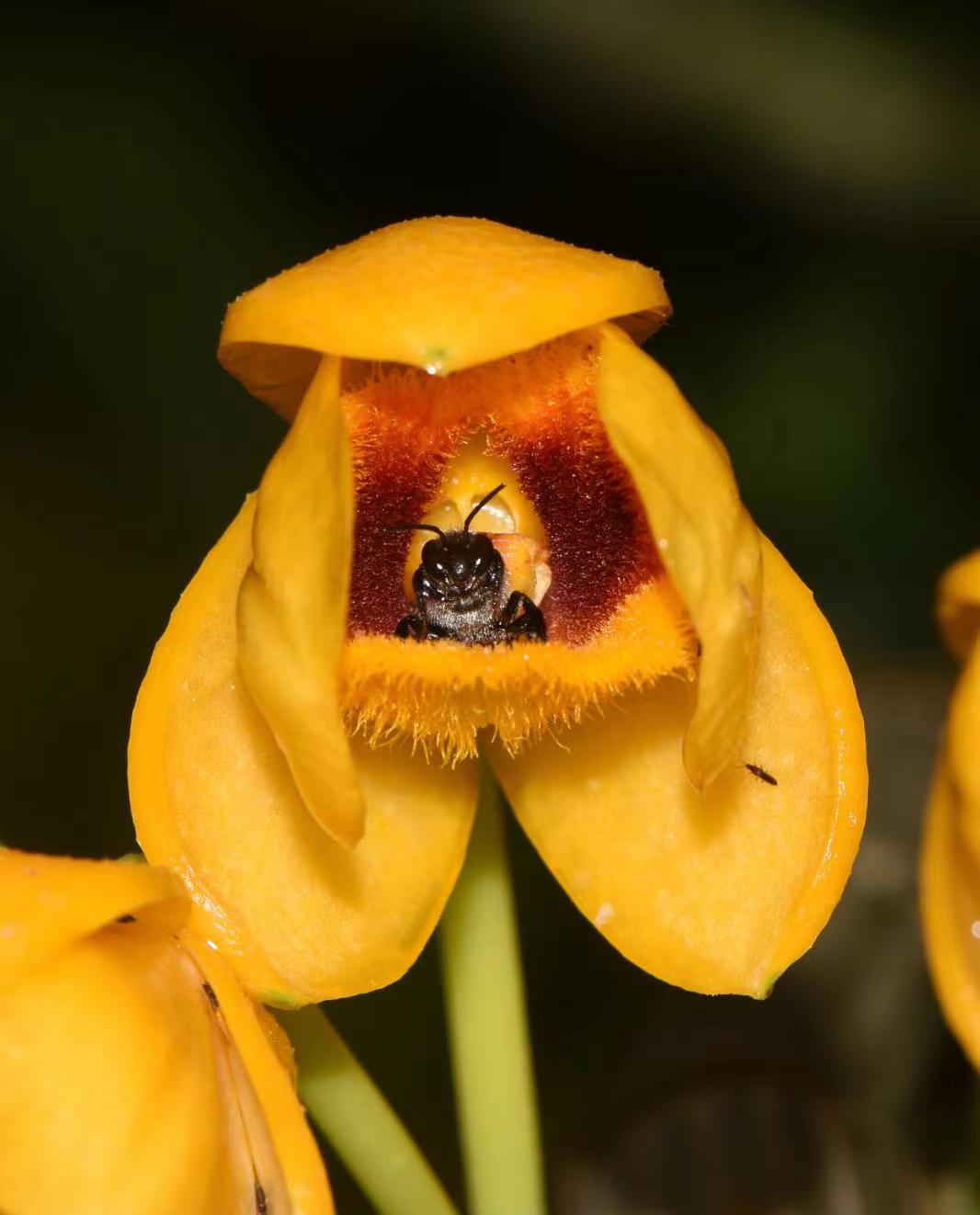 论文第一作者、华中师范大学博士生张蒙介绍,当把石斛属兰花放置在野外有葫芦科油花开花的实验种群中时,油蜂对兰花的访问次数提高了数百倍,这表明兰花的传粉成功很大程度上归功于葫芦科油花植物的同域开花。