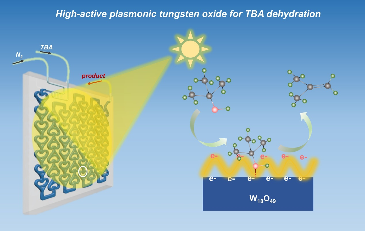 微流反应器中高活性等离子体氧化钨光催化叔丁醇脱水反应。研究团队供图