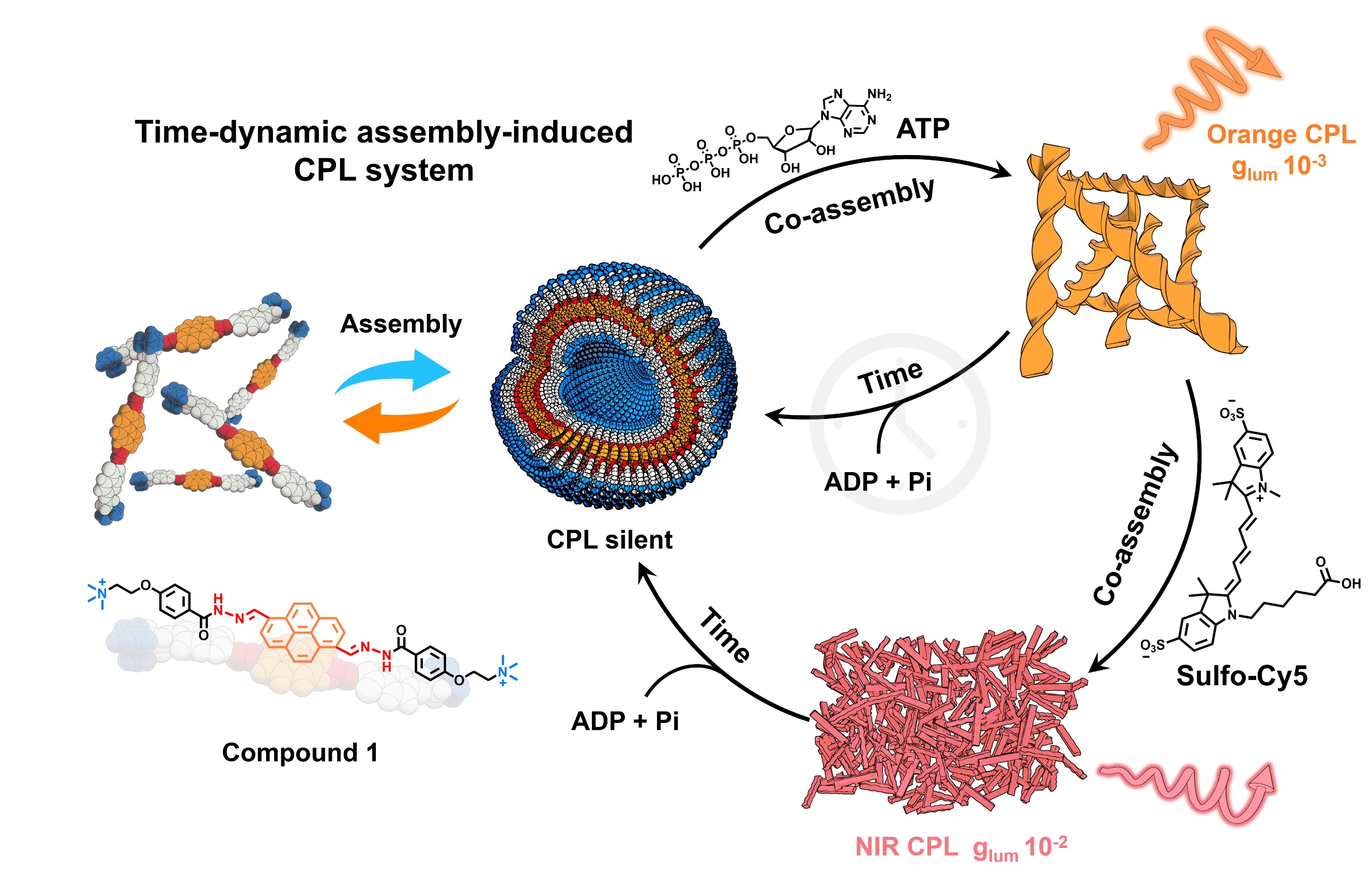 ATP触发的瞬态组装及其动态可控近红外圆偏振发光。图片来源于《德国应用化学》