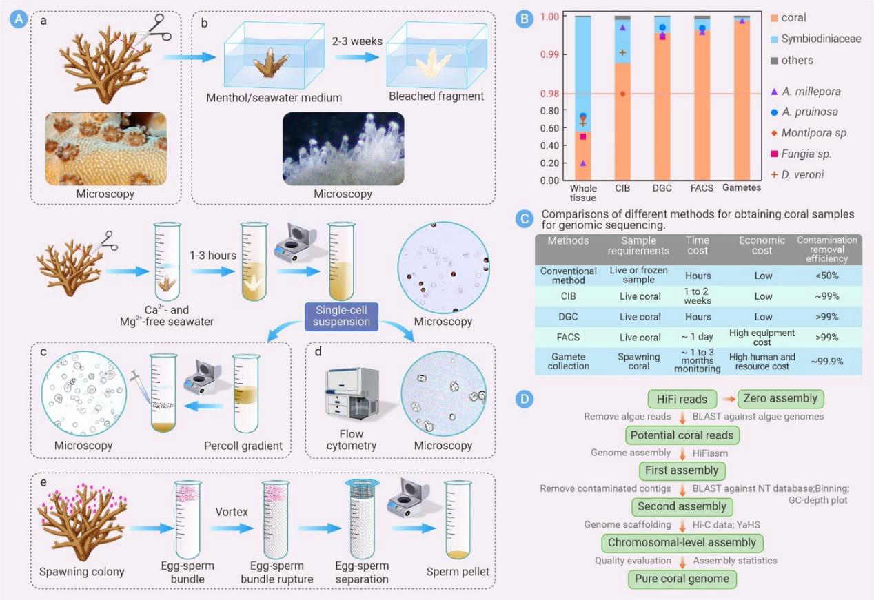 构建造礁石珊瑚纯净基因组的新技术框架。研究团队供图