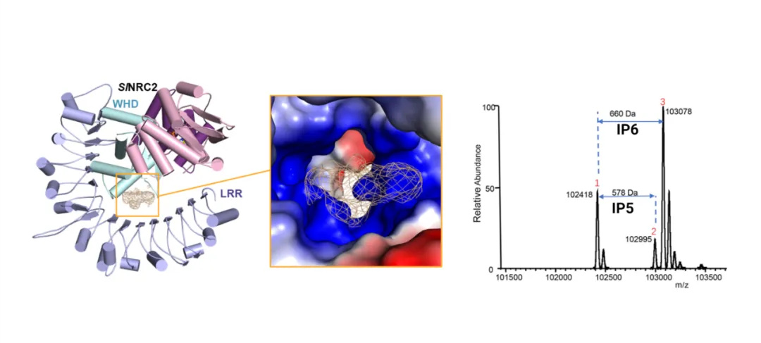 番茄NRC2结构中发现磷酸肌醇小分子及质谱鉴定结果。课题组供图