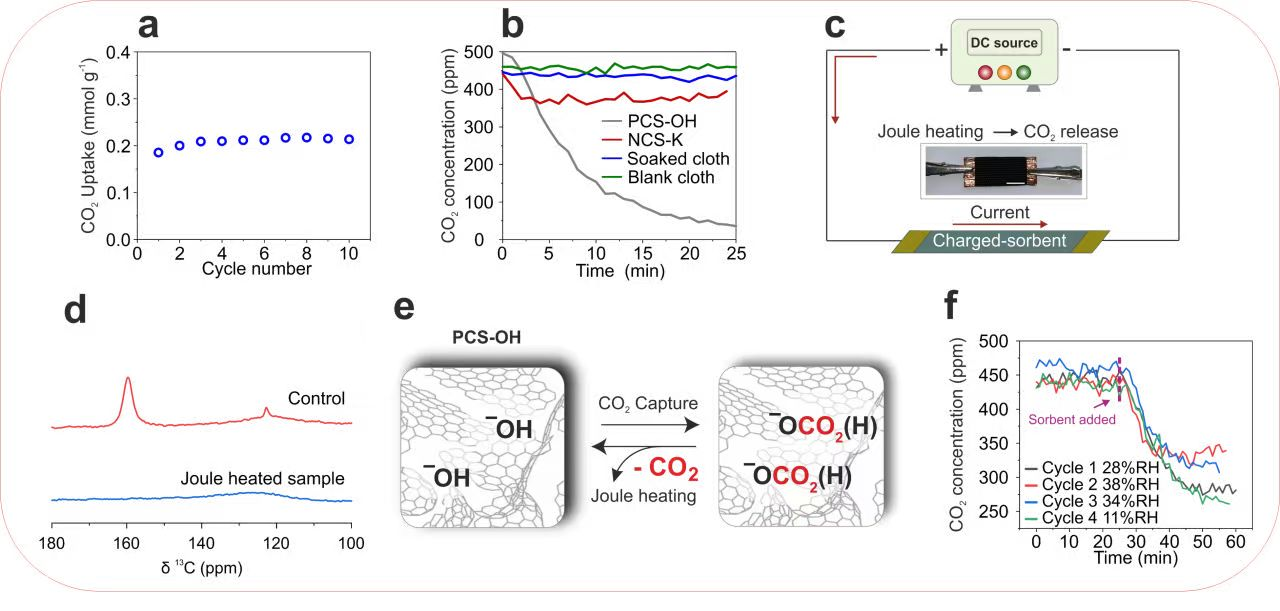 带电吸附剂的直接空气中捕获与焦耳热再生。研究团队供图